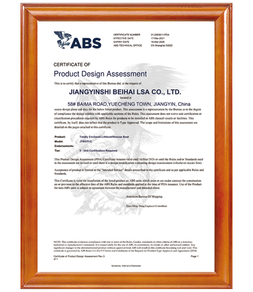 江陰市北海救生設備有限公司創(chuàng)建于2000年,坐落于江蘇省江陰市月城鎮(zhèn)白馬路58號,南瀕太湖、北臨長江、位于錫澄運河河畔,交通及地理位置十分便利。公司占地面積50000多平方米,現有員工200余名,其中博士1名,高級工程師3名,其他各類專業(yè)工程技術人員40余名...